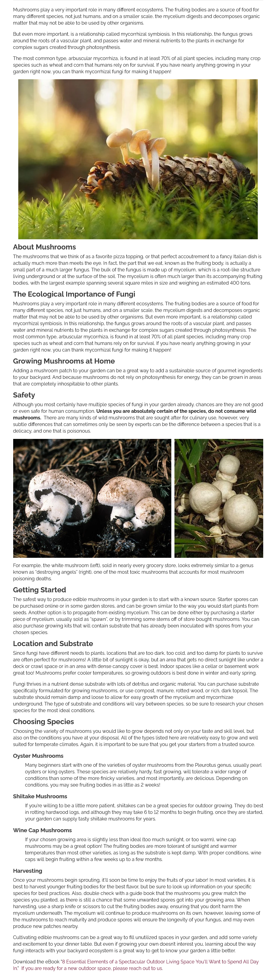 Mushrooms play a very important role in many different ecosystems. The fruiting bodies are a source of food for many different species, not just humans, and on a smaller scale, the mycelium digests and decomposes organic matter that may not be able to be used by other organisms.(Ghostwritten Article)